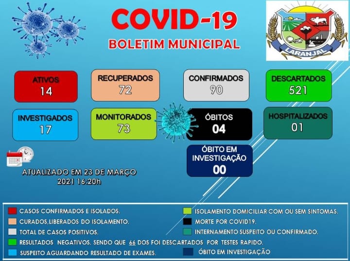 Desde o inicio da pandemia até agora, 521 casos já foram descartados e infelizmente 04 óbitos já foram registrados.