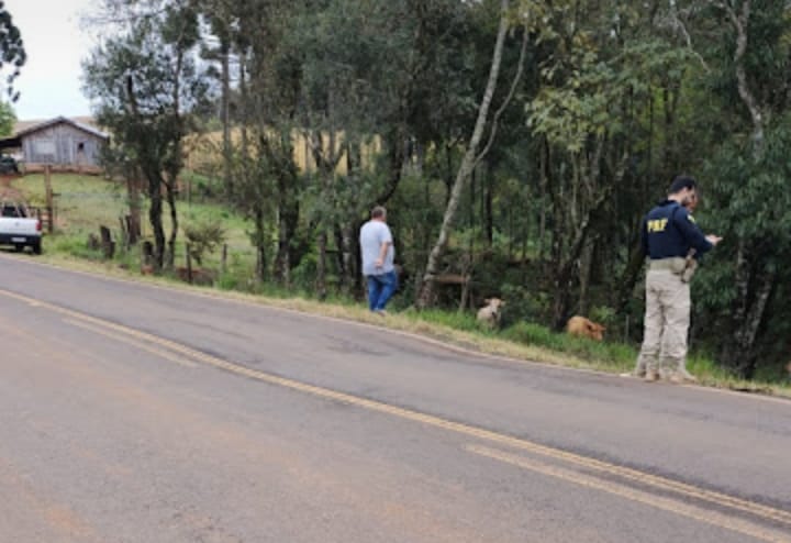 A Polícia Rodoviária Federal (PRF) esteve em um trecho da BR-158, na estrada do Rio do Tigre, verificando um problema.