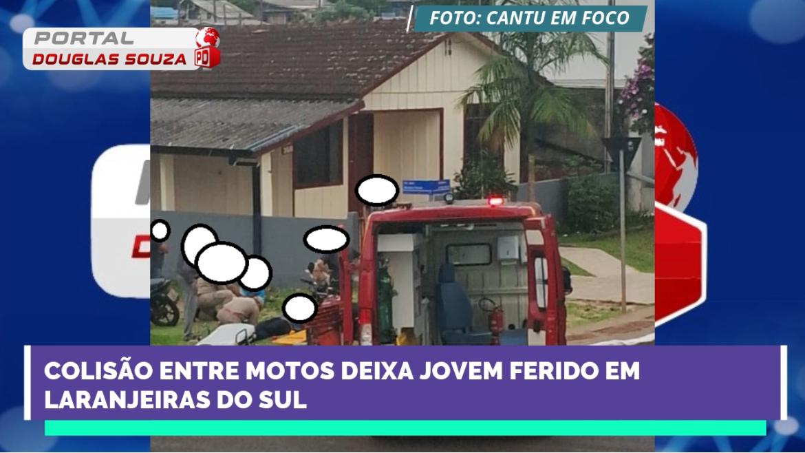 Um acidente de trânsito envolvendo duas motocicletas foi registrado no início da tarde desta sexta-feira (13 de dezembro) em Laranjeiras do Sul, na esquina da Rua Barão do Rio Branco com a Avenida José Martins Pavlak.