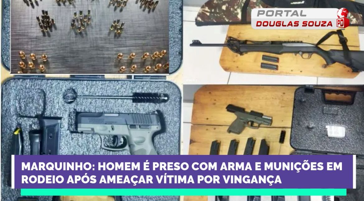 Na noite deste sábado (22 de fevereiro) a Polícia Militar (PM) de Marquinho foi acionada pois no CTG Marco da Tradição, onde estaria ocorrendo um rodeio, havia um homem (48 anos) de posse de uma arma de fogo, atrás de outro homem (35 anos), por causa de uma vingança pessoal.